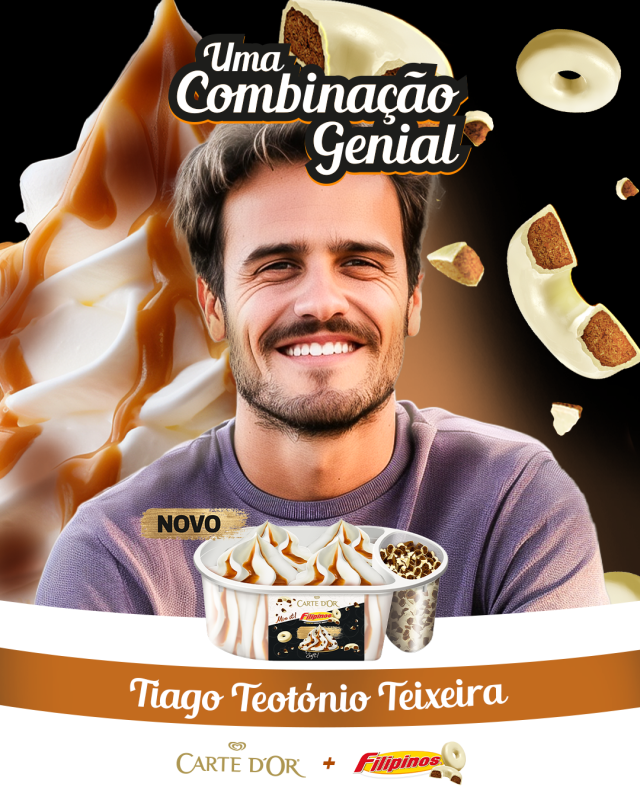 Duas das marcas preferidas dos portugueses no mundo do snacking juntam-se num só produto, e criam campanha desenvolvida em Inteligência Artificial para lançar o novo gelado Carte D’Or Filipinos. Uma Combinação Genial entre o Gelado Carte D’Or e Filipinos de Chocolate Branco, já disponível em todos os supermercados em Portugal.