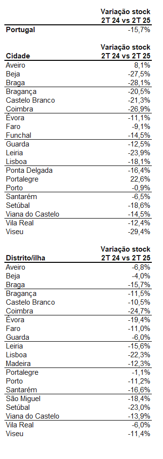 Por outro lado, Portalegre, foi a cidade onde mais subiu a oferta (22,6%), seguida por Aveiro (8,1%), sendo as únicas cidades analisadas onde o “stock” subiu.