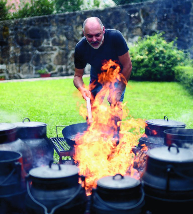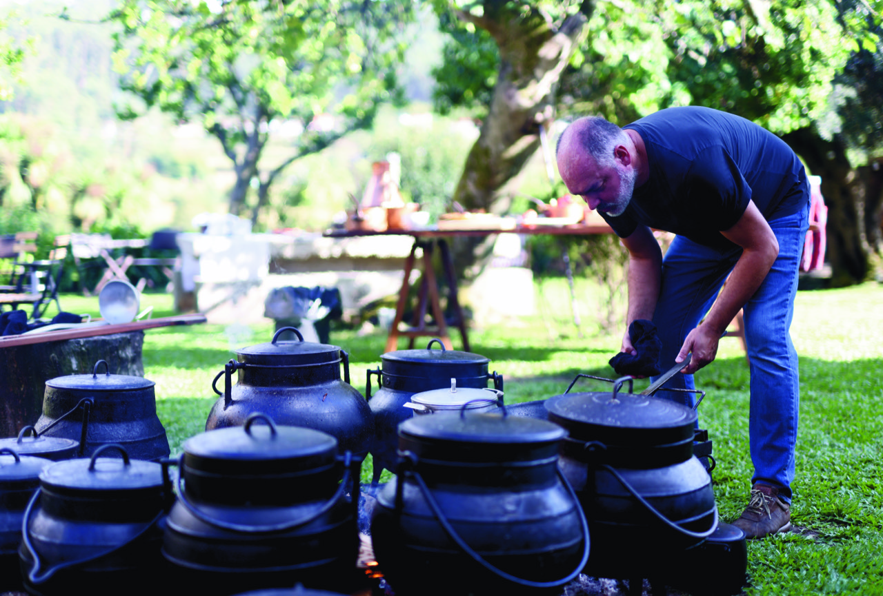 Cozinhando em potes de ferro fundido e ao ar livre, com fogo de chão, a proposta baseia-se no exercício de partilha gastronómica e cultural, em que o chefe mostra a sua versatilidade gastronómica e a paixão pelas origens e promove a tertúlia à volta dos produtos e da técnica ancestral de cozinhar no fogo.