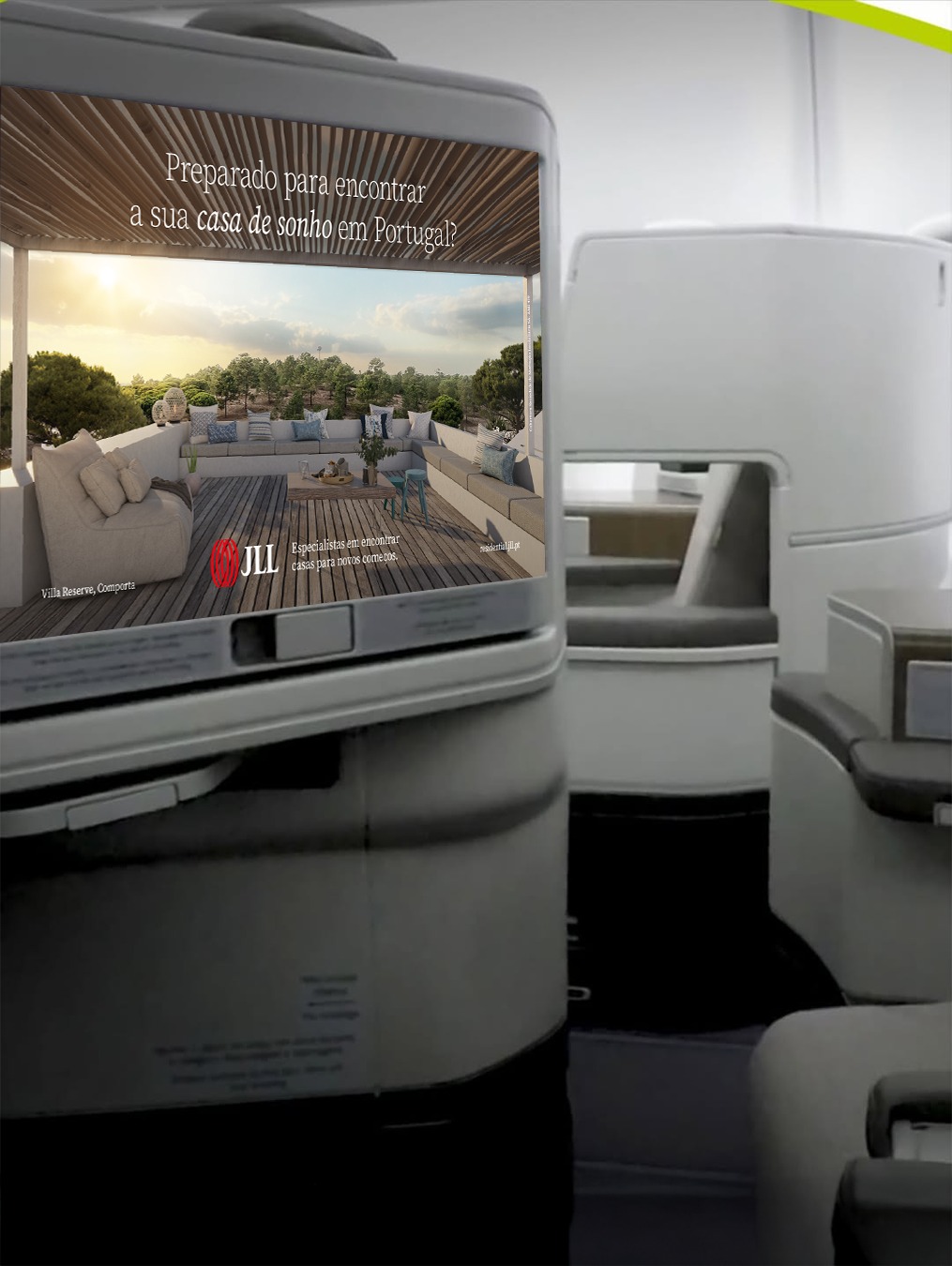 A campanha está ativa durante os meses de setembro e outubro e é dirigida a todos os passageiros que utilizam o sistema de entretenimento a bordo, tanto em classe executiva como nas restantes classes do avião. O principal objetivo é reforçar a notoriedade da oferta residencial da JLL, promovendo os seus serviços junto de um público qualificado, num contexto de atenção elevada e envolvimento com os conteúdos.